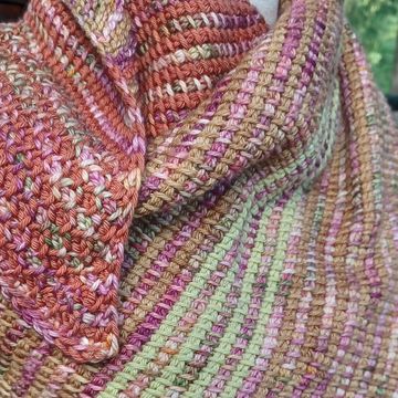 Thick shawl made of 100% Peruvian wool. Shades of soft rose, grays and browns. It's an odd mix of colours, but it looks amazing! This was my first Tunisian crochet shawl, and so many people asked me about it that I decided to make more. These items provide instant style and comfort, and they are made to last a lifetime.