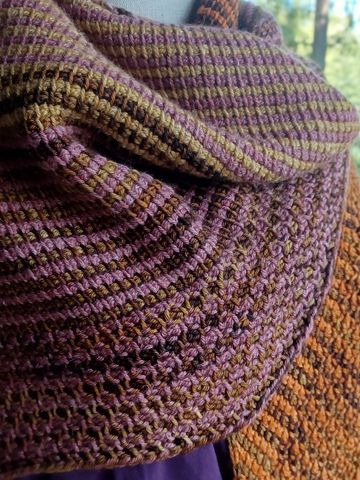 SUMMER 2025 Collection | Shawl of merino wool dyed in Canada and, in the case of this one, some of it it was dyed in Newfoundland. I purchased the yarn last fall when I visited St. John's.